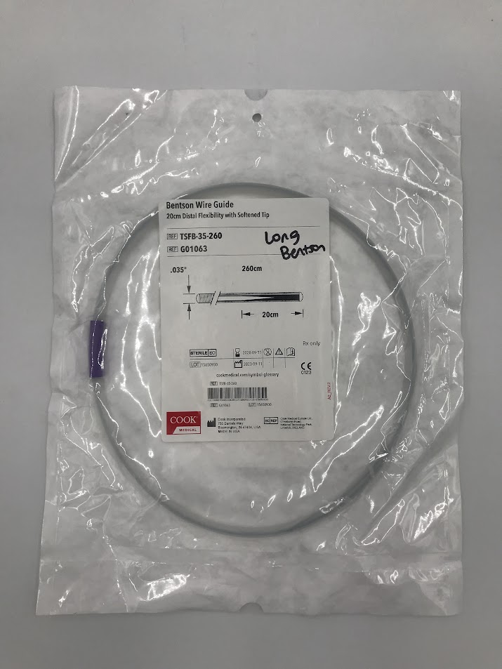 COOK G01063 Bentson Wire Guide 20cm Distal Flexibility w/Softened Tip .035″ x 260cm x 20cm (X)