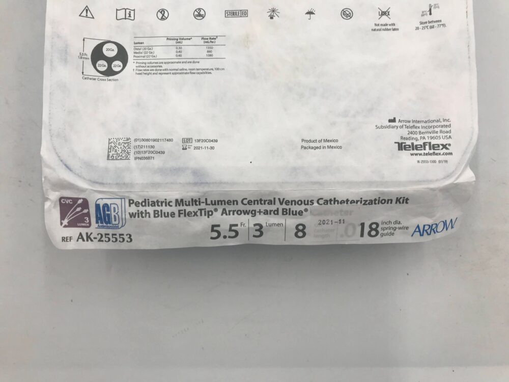 ARROW / TELEFLEX MEDICAL AK-25553 AGB Pediatric Multi-Lumen Central Venous Catheterization Kit w/ Bue FlexTip Arrowg+ard Blue Catheter 5.5F x 8cm x .018in(X)