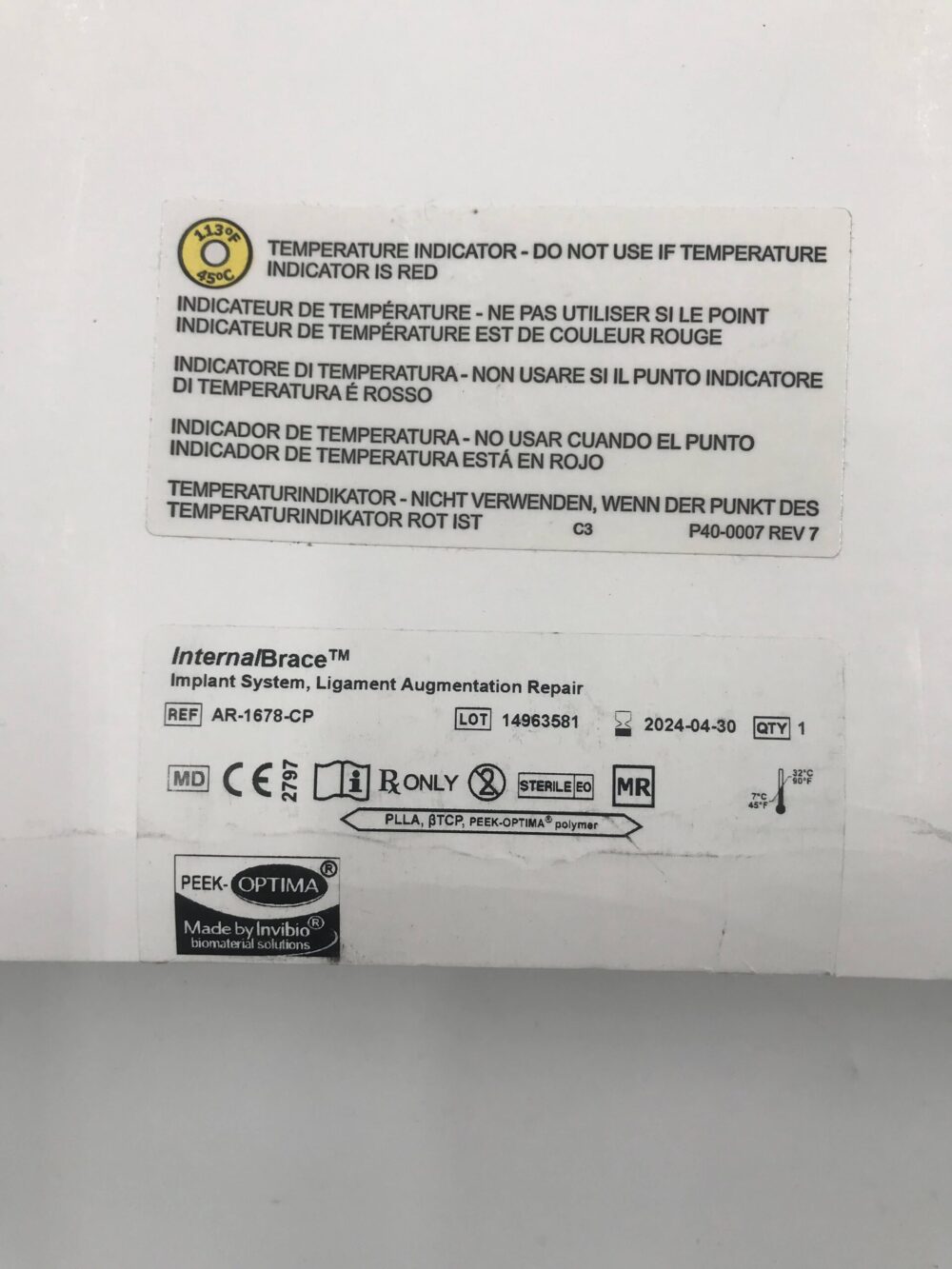 ARTHREX AR-1678-CP InternalBrace Implant System, Ligament Augmentation Repair (X)
