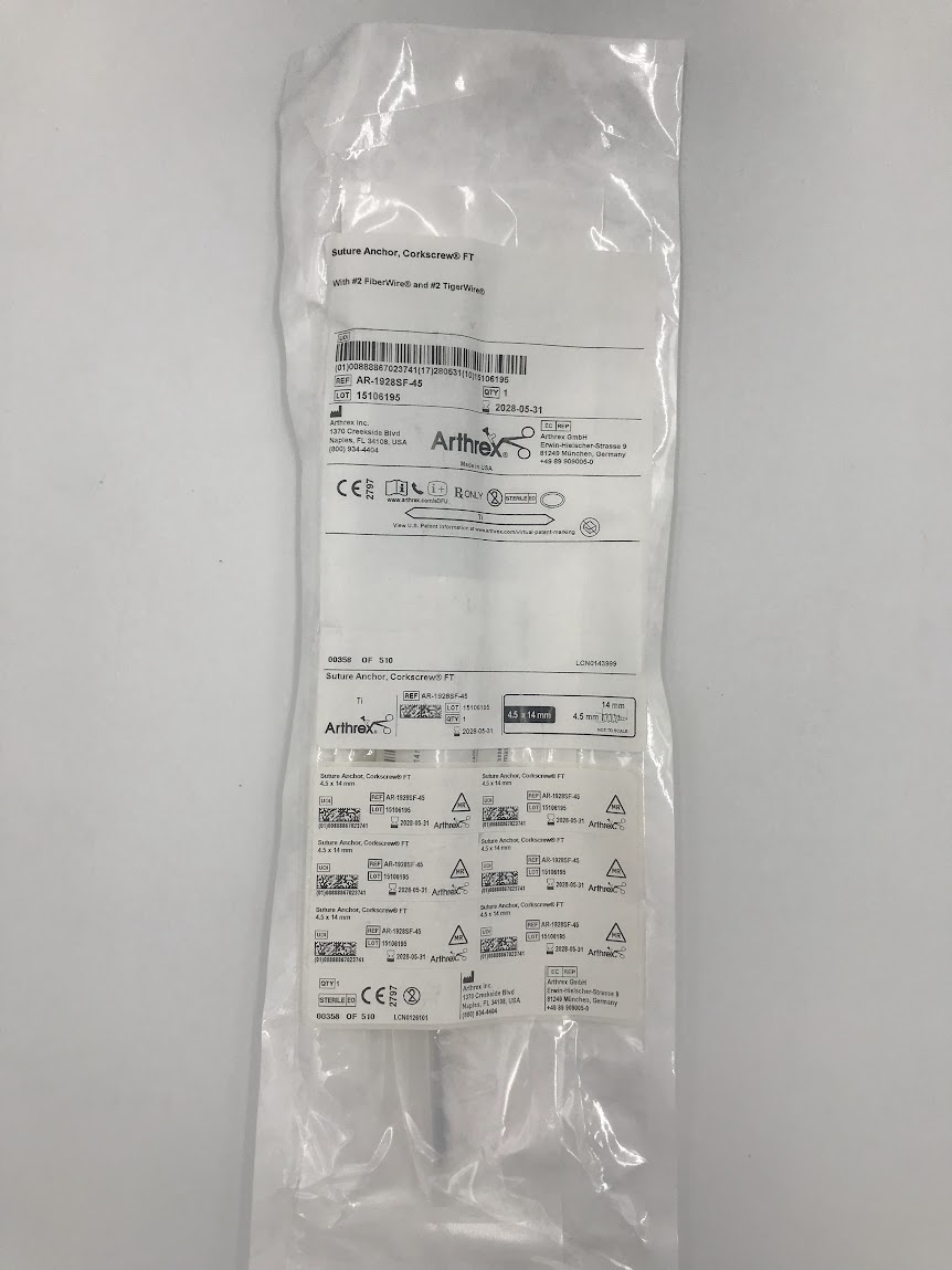 10 de April de 2026ARTHREX AR-1928SF-45 Suture Anchor, Corkscrew Ft With #2 Fiberwire And #2 Tigerwire
