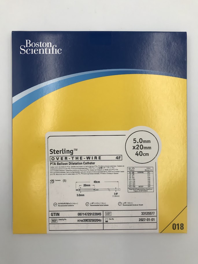 BOSTON SCIENTIFC 3903250204 Sterling OTW PTA Balloon Dilatation Catheter 4F 5.0mm x 20mm x 40cm