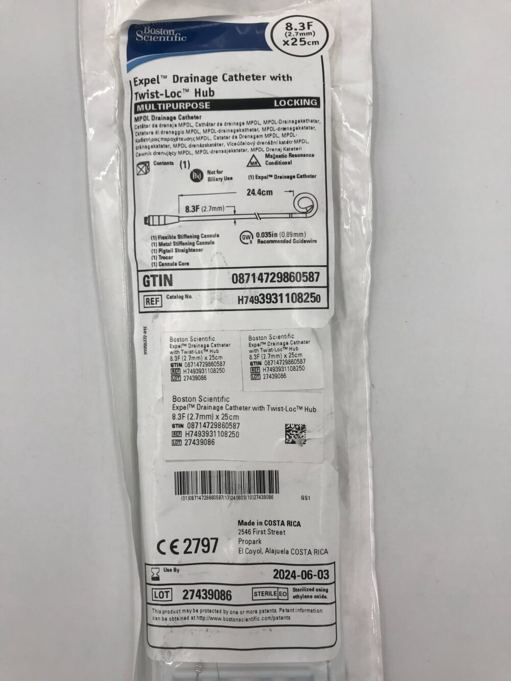 BOSTON SCIENTIFIC 393110825 Expel Drainage Catheter w/ Twist-Loc Hub Multipurpose 8.3F x 25cm (X)