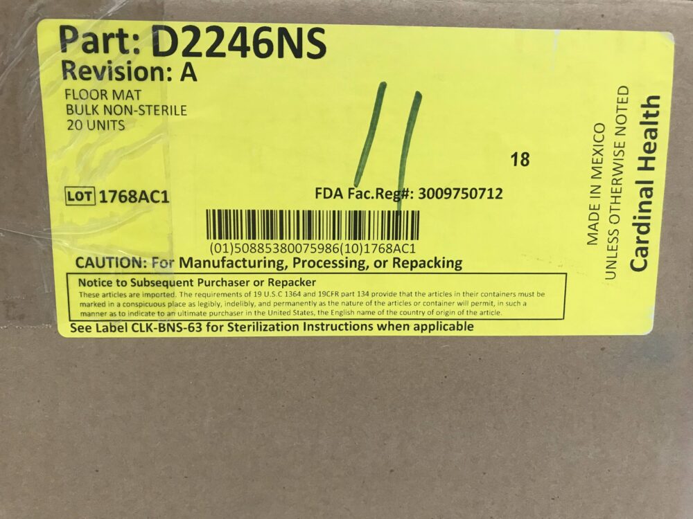 CARDINAL HEALTH D2246NS Floor Mat, Bulk Non-Sterile (20/Case)