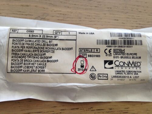 CONMED C8583 Badger Cannulated Drill Bit, 8.5mm x 22.9mm (X) 2012-05