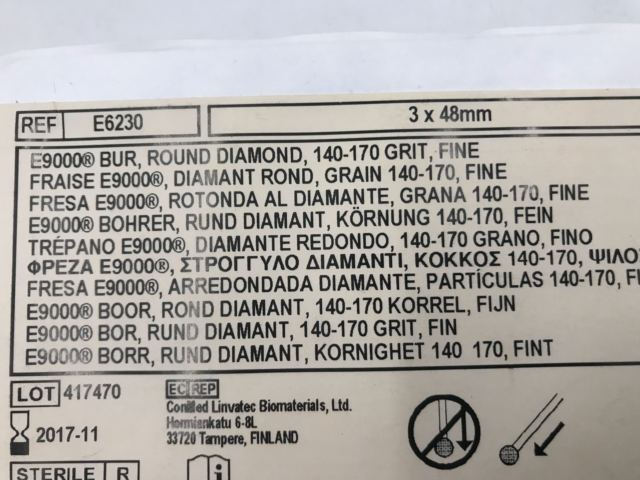 Conmed E6230 E9000 Bur Round Diamond 140-170 Grit Fine 3 x 48mm (X) **Expired 2017-11**