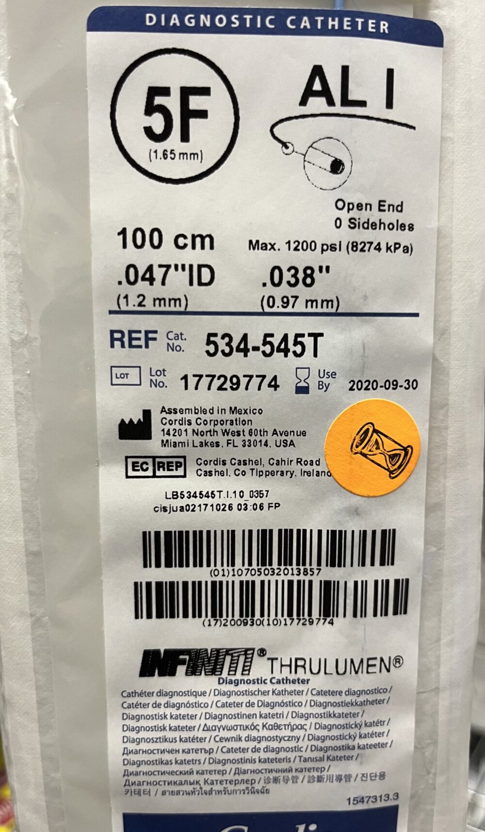 CORDIS 534-545T Infiniti Thrulumen Diagnostic Catheter AL I 5F (X) **EXPIRED 2020-09-30**