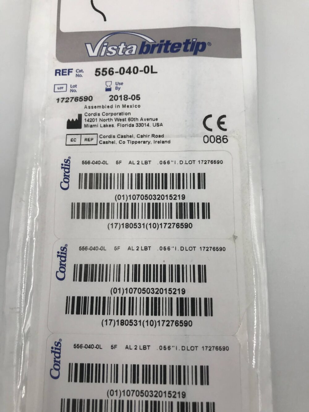 CORDIS 556-040-0L AL 2 LBT Guiding Catheter 5F 100cm .056″ Vista Britetip (X) **EXPIRED 2018-05**