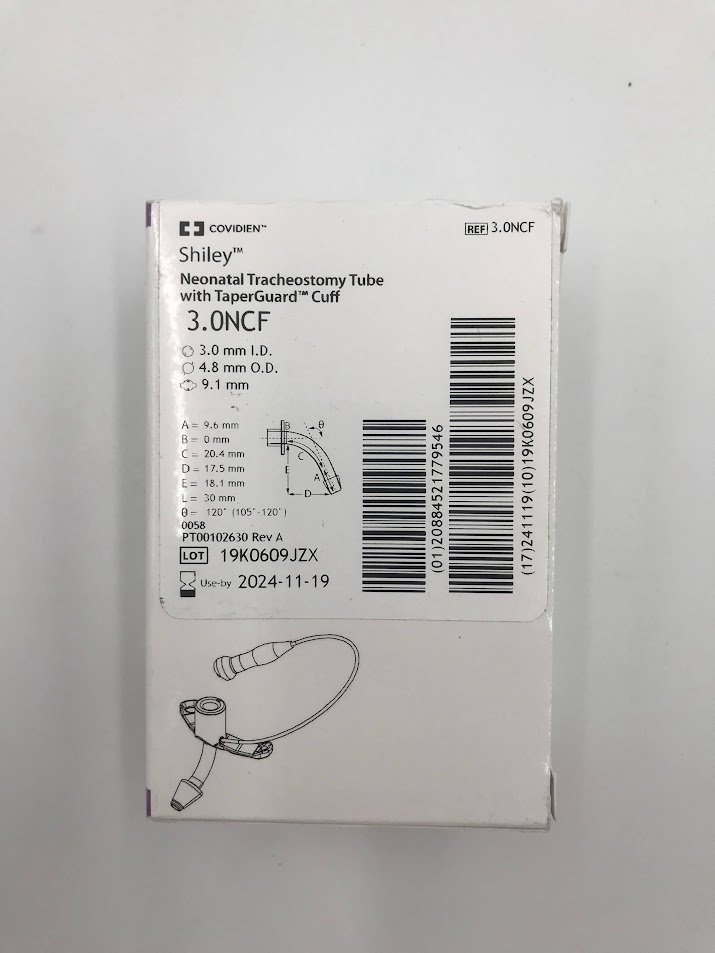 COVIDIEN 3.0NCF Shiley Neonatal Tracheostomy Tube w/ TaperGuard Cuff 3.0mm I.D. (X)