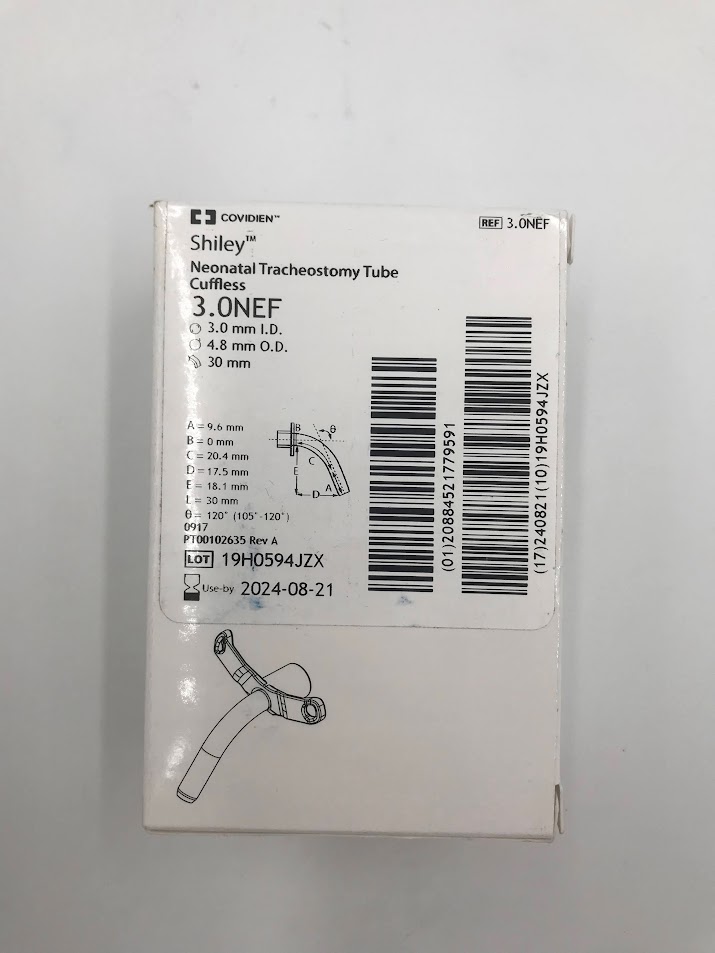 COVIDIEN 3.0NEF Shiley Neonatal Tracheostomy Tube Cuffless 3.0mm I.D. (X)