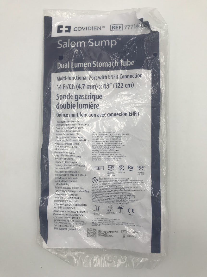 25 de March de 2026COVIDIEN 7771410E Salem Sump Dual Lumen Stomach Tube 14 Fr/Ch (4.7mm), 48″ (122cm) Multifunctional Port
