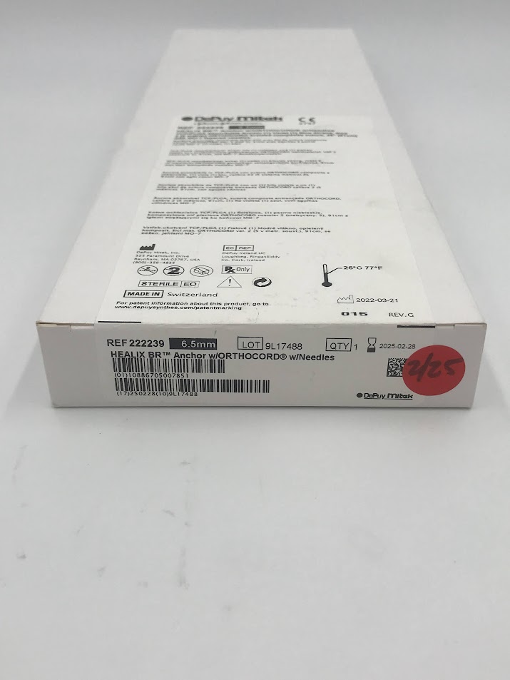 DEPUY 222239 Mitek Healix BR Anchor w/ Orthocord w/ Needles 6.5mm (X)