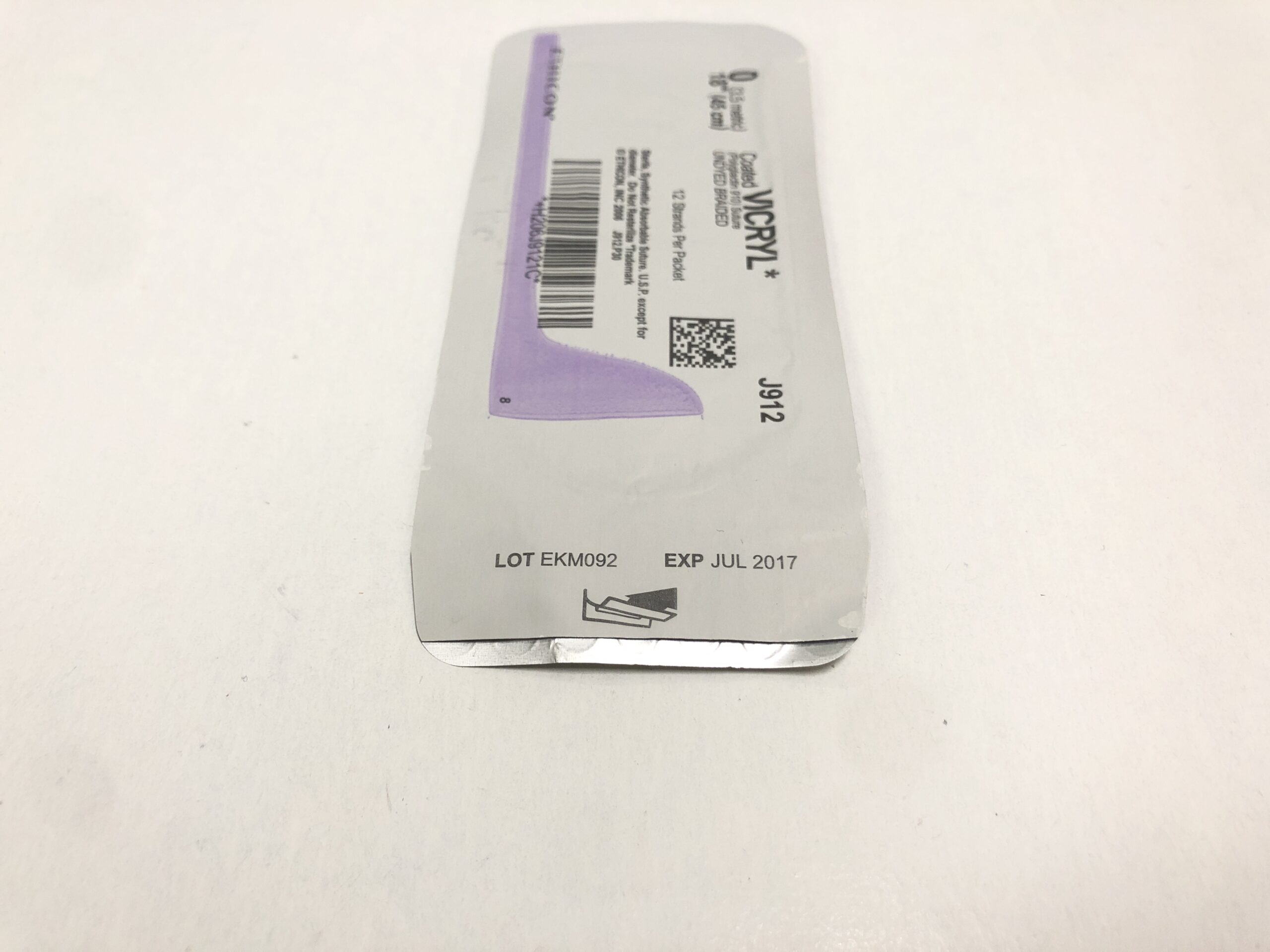 Ethicon J912 Vicryl Coated Suture Undyed Braided 0 18″ 12 Strands Per Packet (X) **Expired 2017-07**