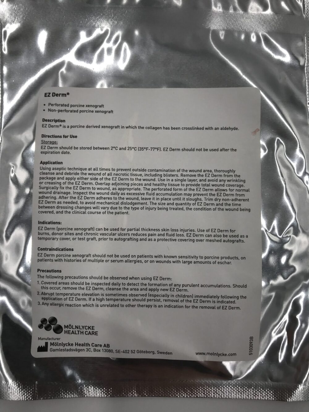 Molnlycke 131715 EZ Derm, Perforated Porcine Xenograft, 5x5cm/2x2inĀ (x) 2020-06-28