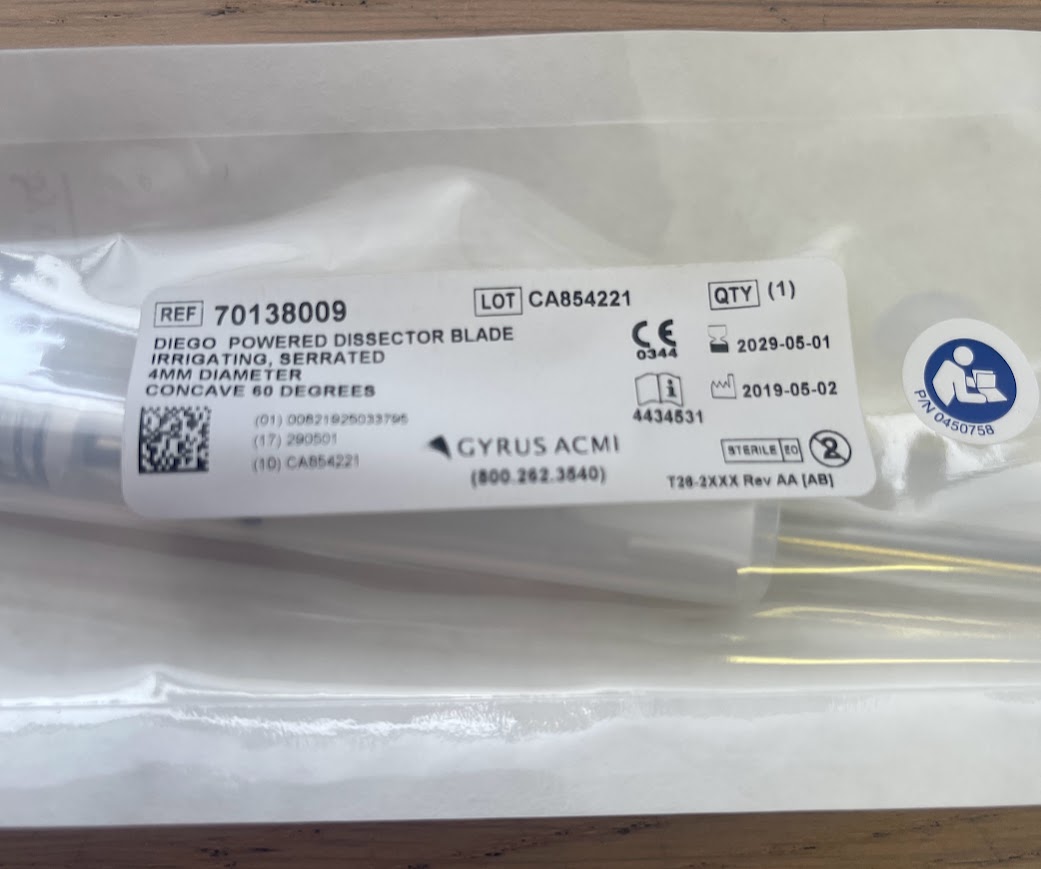 21 de September de 2022GYRUS 70138009 Diego Powered Dissector Blade Irrigating, Serrated 4mm Diameter, Concave 60 Deg.