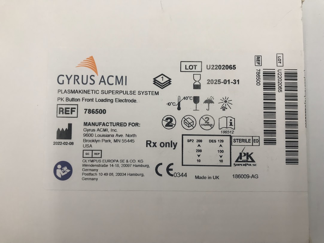 GYRUS 786500 Plasmakinetic Superpulse System PK Button Front Loading Electrode (X)