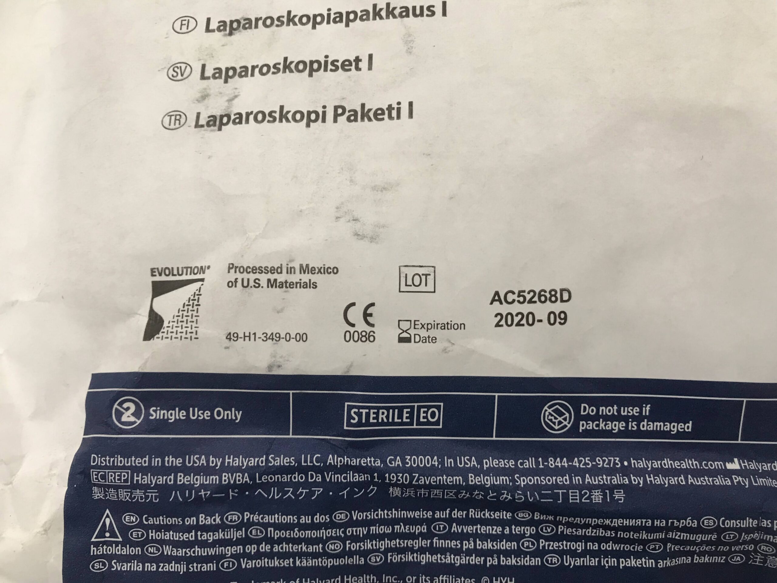 Halyard 88088 Laparoscopy Pack I AAMI Level 4 98in x 41in x 99in (X) **Expired 2020-09**