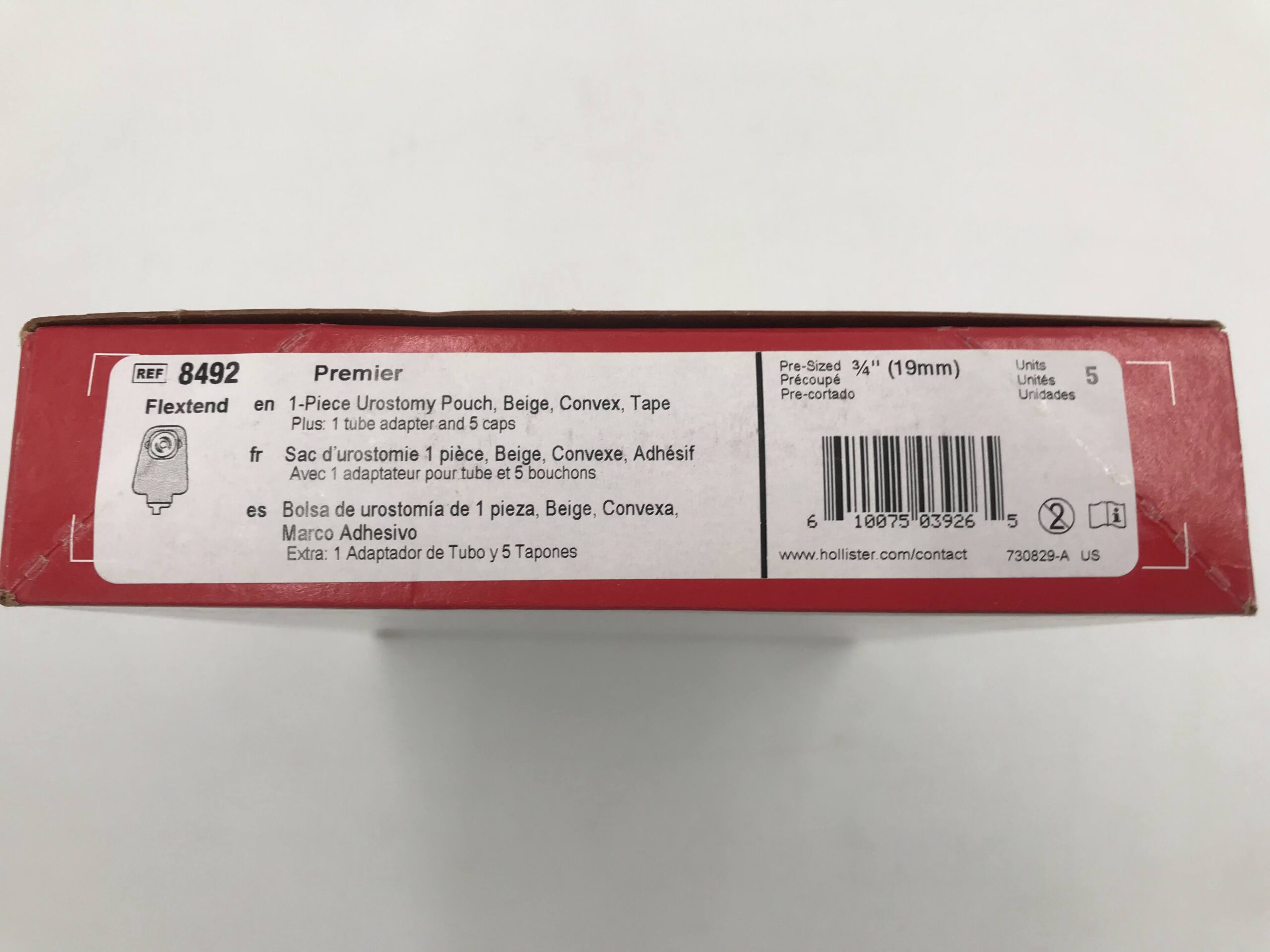 Hollister 8492 Premier Flextend 1-Piece Urostomy Pouch, Beige, Convex, Tape, (Plus: 1 tube adapter and 5 caps) Pre-sized 3/4″ (19mm) Flextend (5/Box)