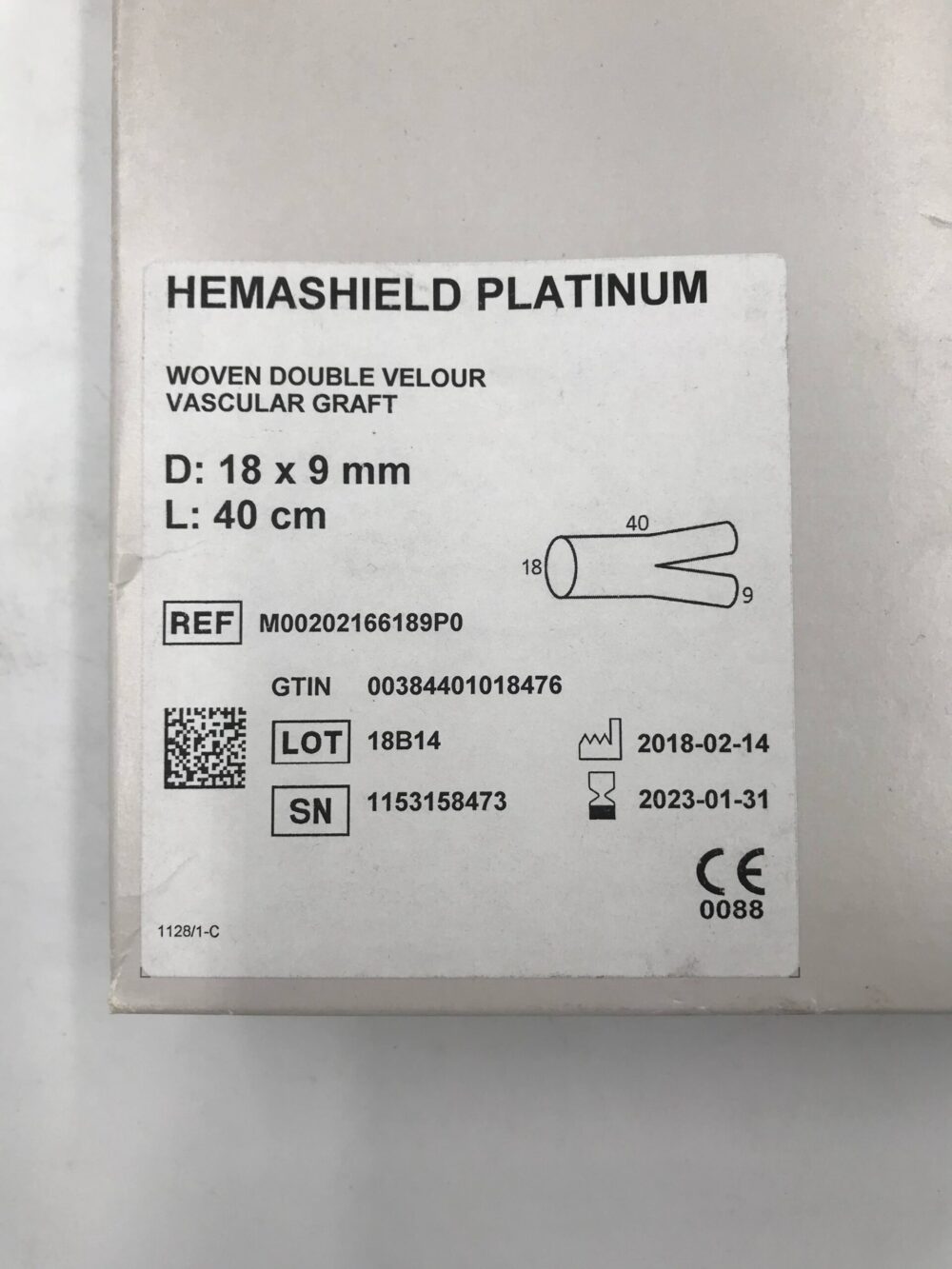 MAQUET M00202166189P0 Hemashield Platinum Woven Double Velour Vascular Graft 18x9mm x 40cm (X)