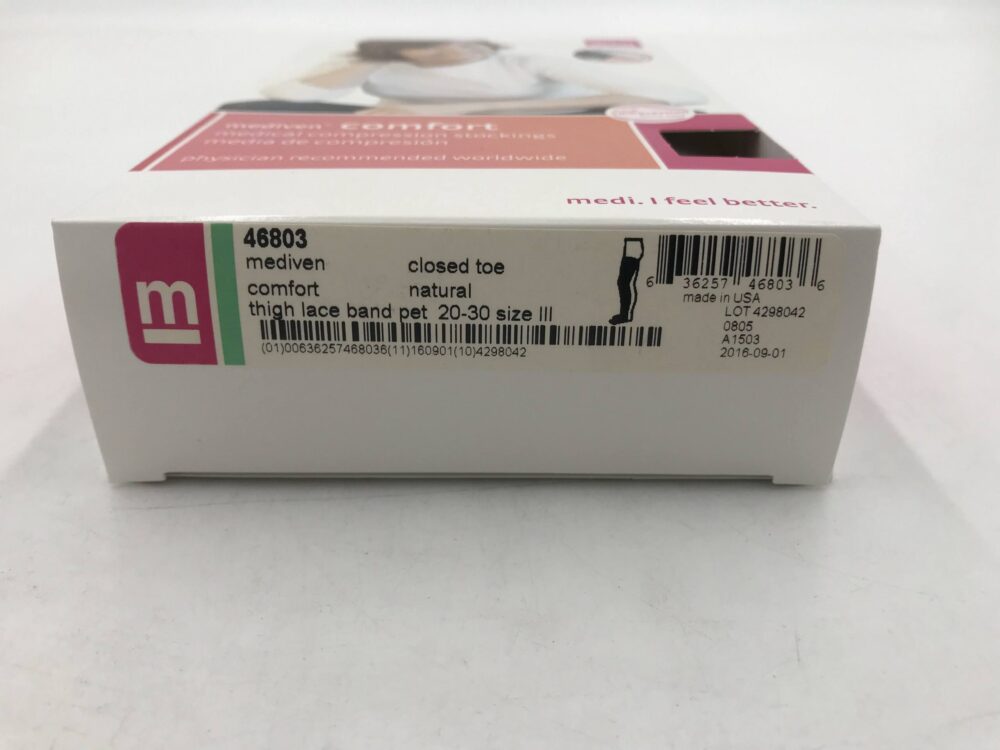 Mediven 46803 Compression Stockings Comfort Thigh Lace Band Pet Closed Toe Natural 20-30 Size III