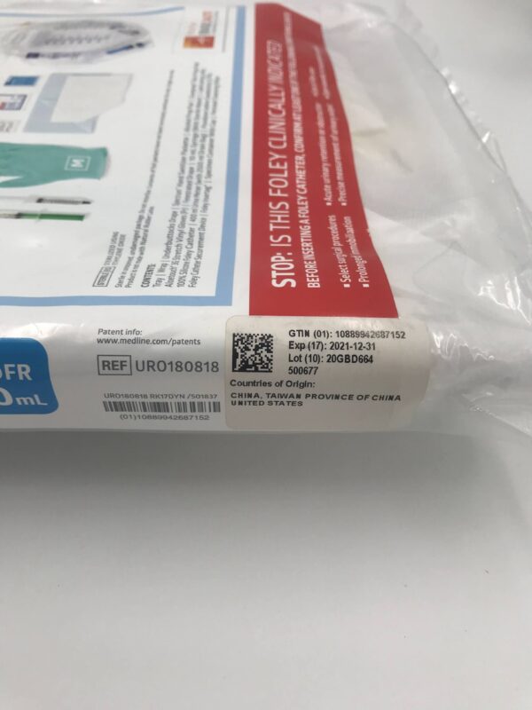 MEDLINE URO180818 Total One Layer Urology Tray 18F x 10ml, Closed System w/100% Silicone Foley Catheter Vented Urine Meter (X)