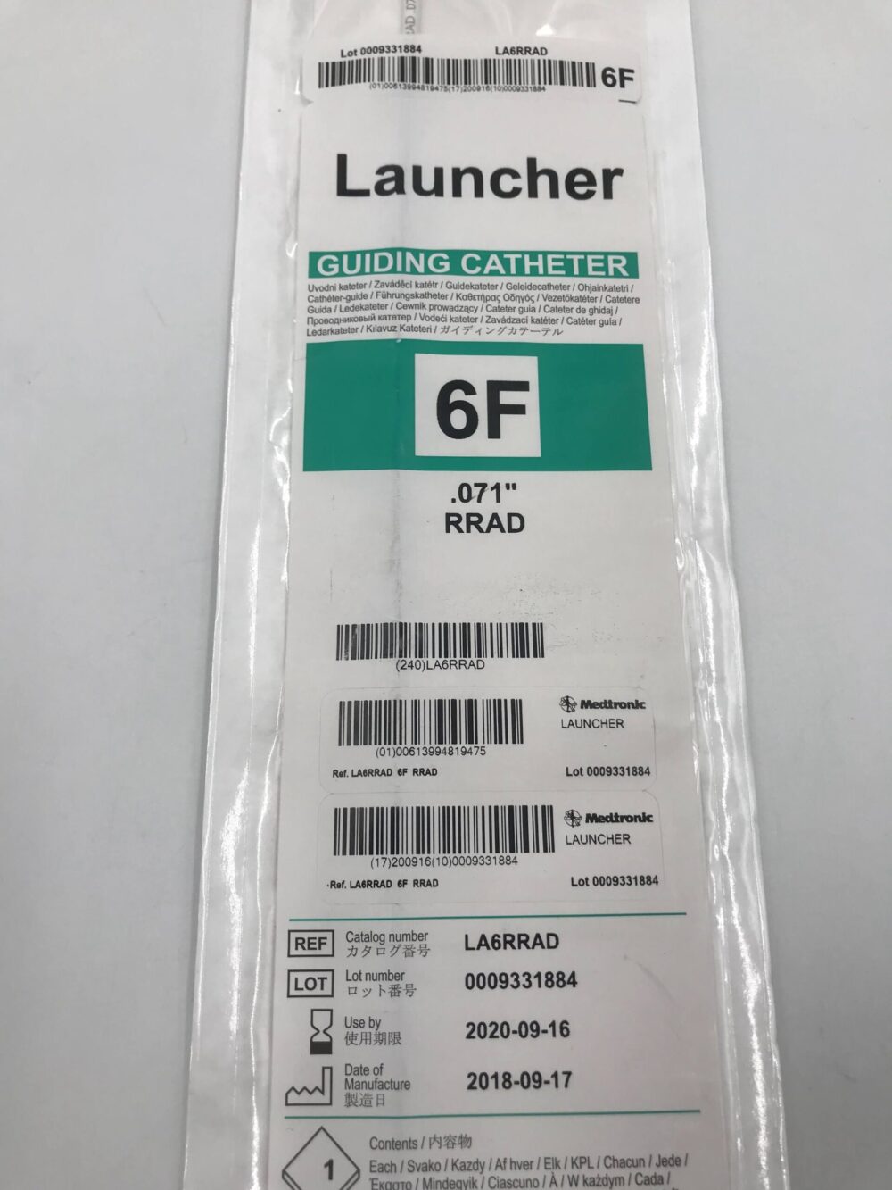 Medtronic LA6RRAD Launcher RRAD Guiding Catheter .071″ 6F 100cm (X)****Expired 2020-09-16****