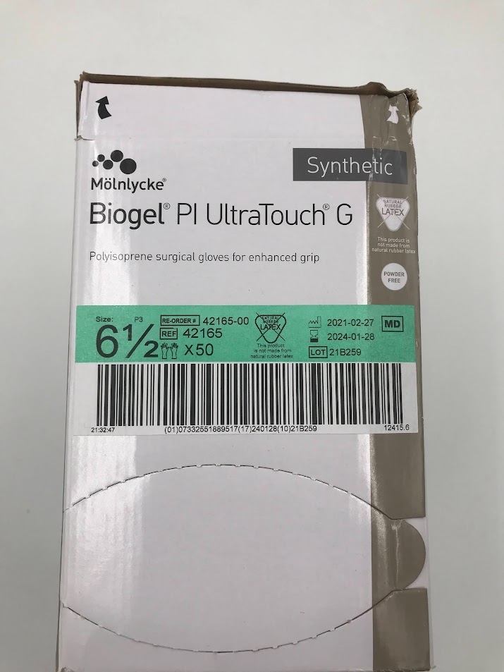 MOLNLYCKE 42165 Biogel PI UltraTouch G Surgical Gloves For Enhanced Grip Size 6.5 (50/Box) (X)