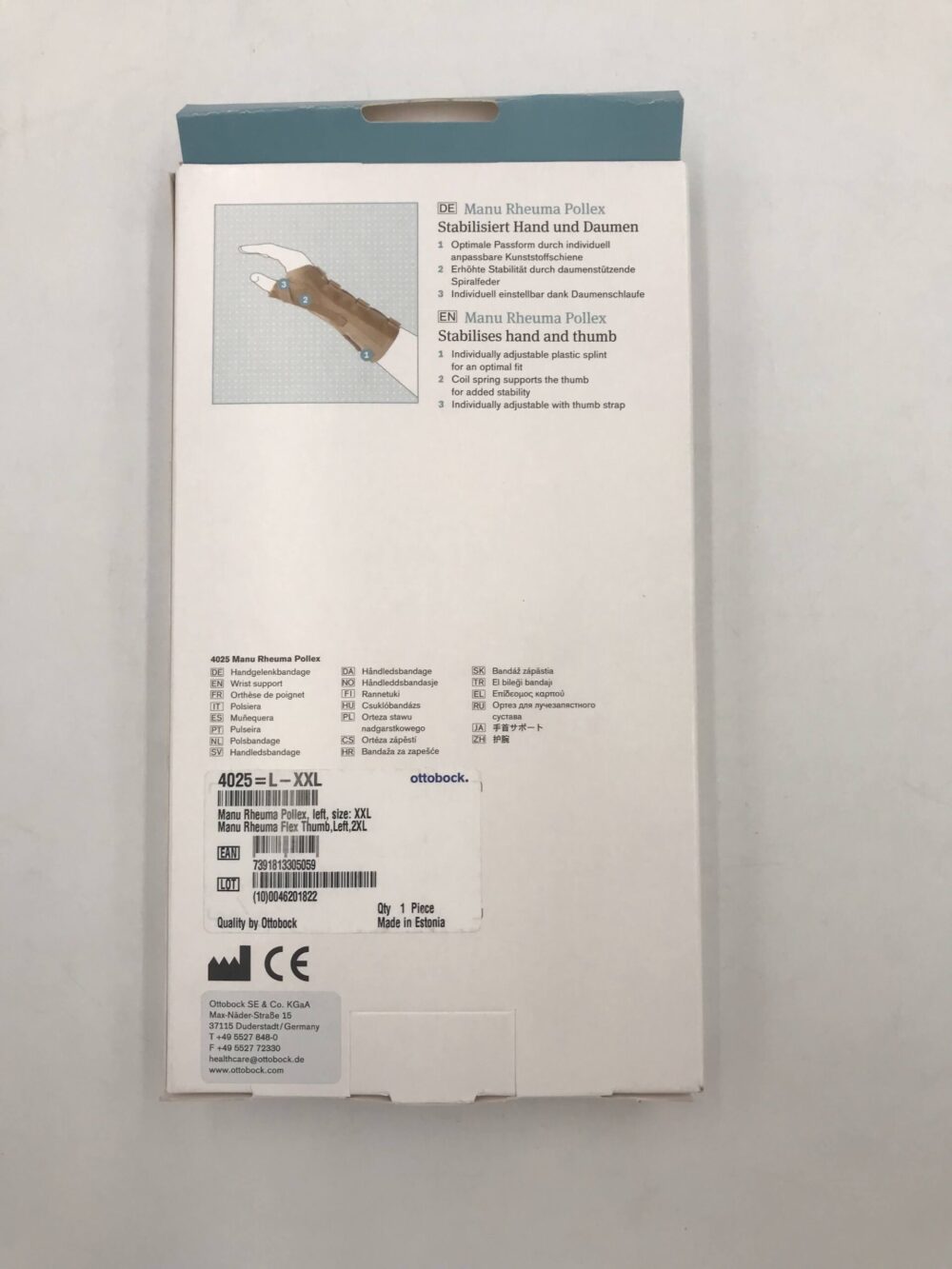 OTTOBOCK 4025=L-XXL Manu Rheuma Pollex Wrist Support Beige XXL Left w/Flex Thumb