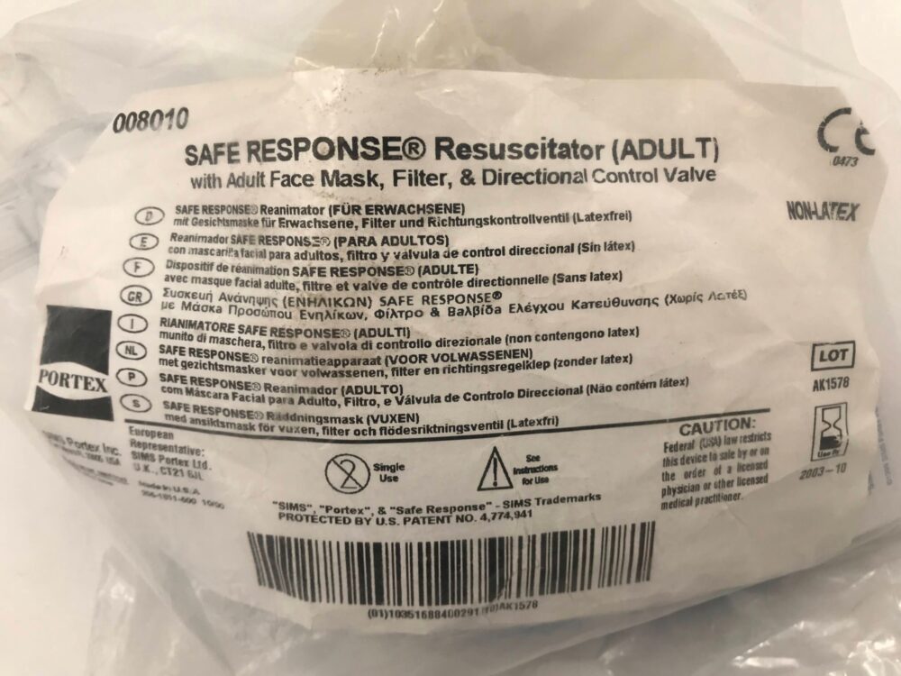 PORTEX 008010 Safe Response Resuscitator (Adult) w/Adult Face Mask, Filter, & Directional control Valve (X)
