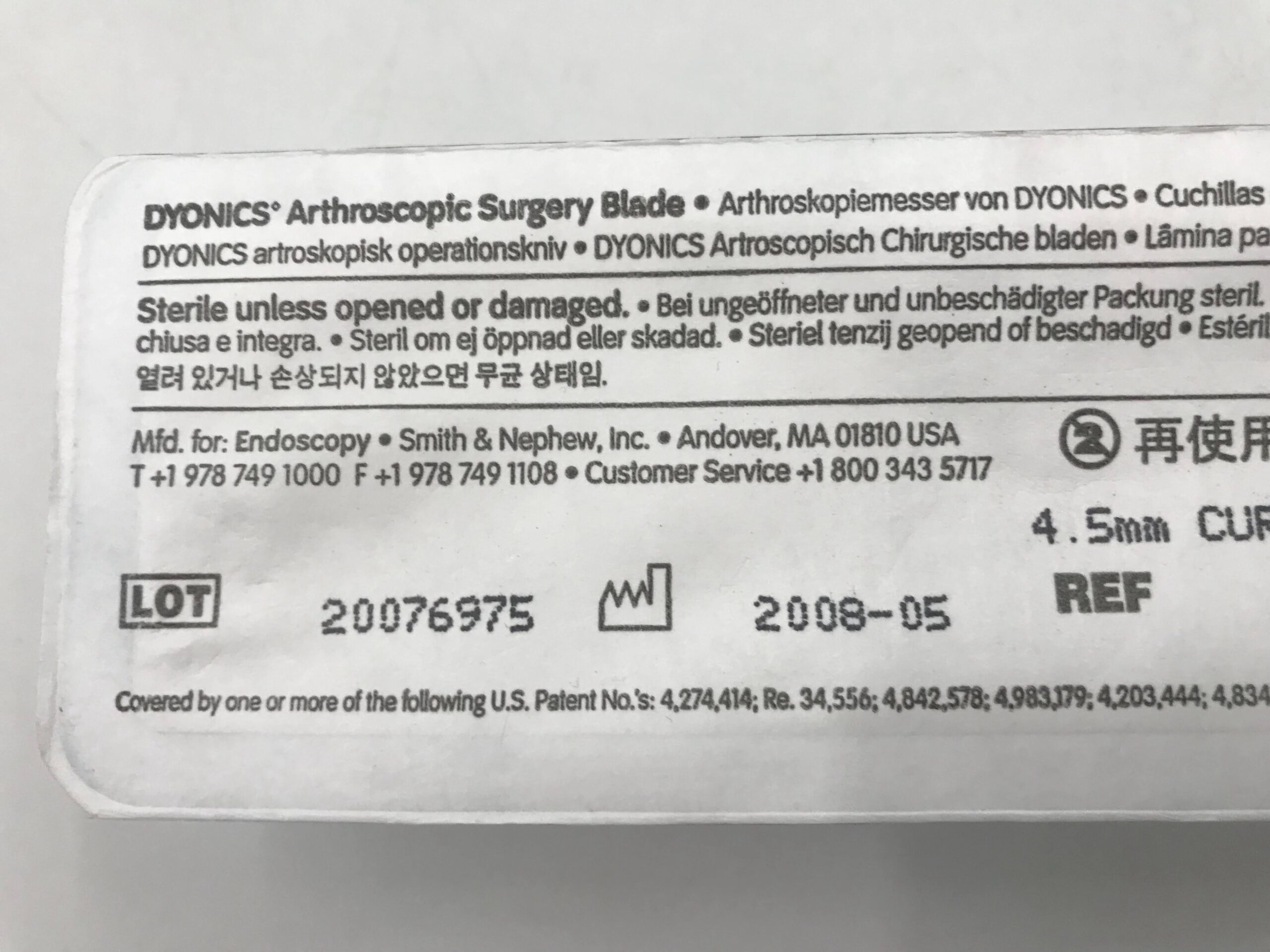 Smith & Nephew 7205349 dyonics Arthroscopic Surgery Blade 4.5mm Curved Full Radius Concave (X) **Expired 2013-05**