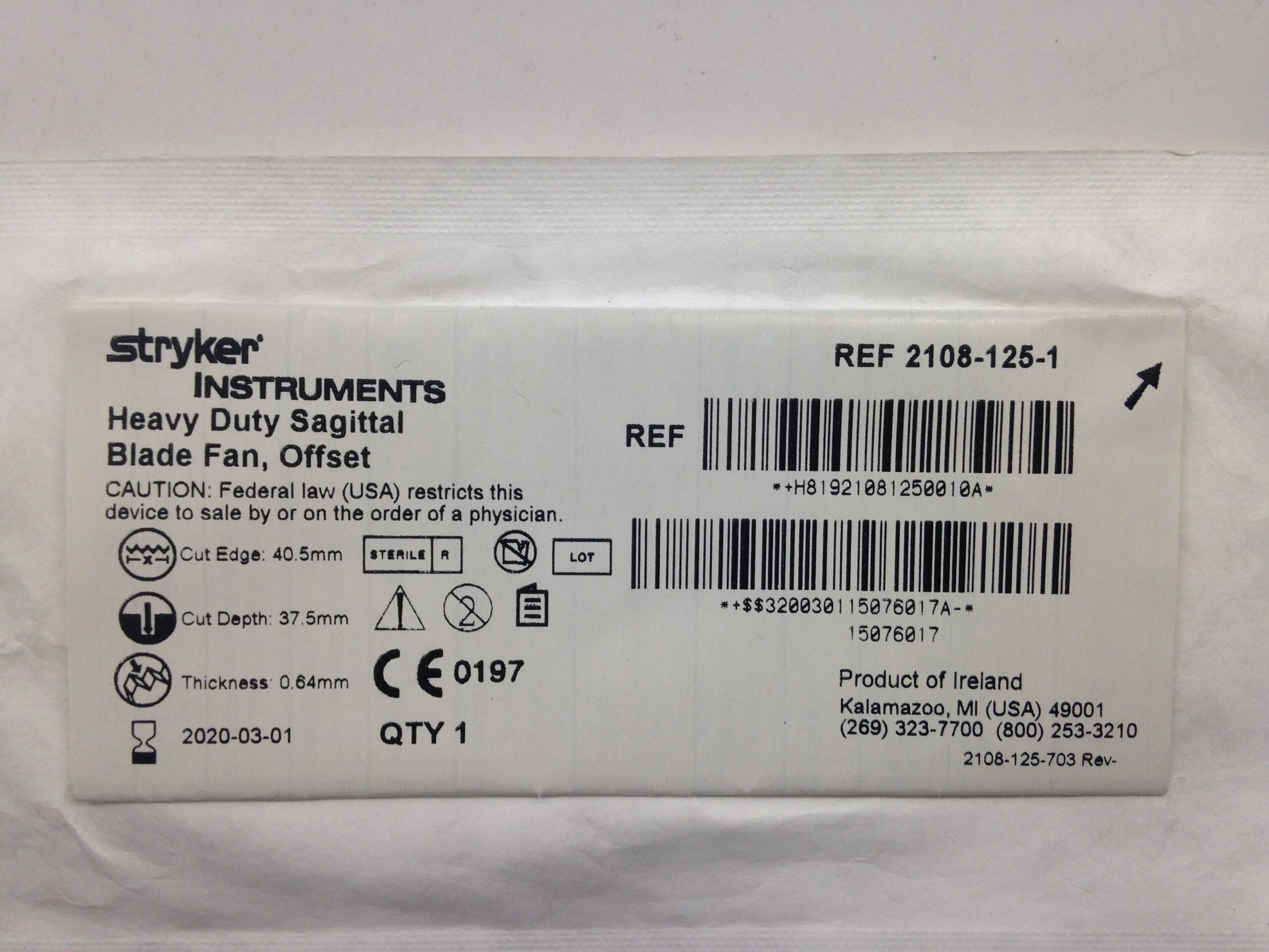 STRYKER 2108-125-1 Heavy Duty Sagittal Blade, Fan, Offset (X) 2020-03-01