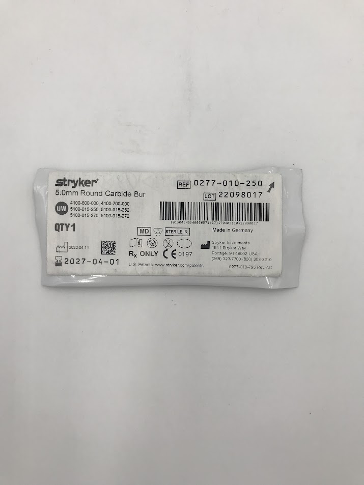 STRYKER INSTRUMENTS 0277-010-250 5.0mm Round Carbide Bur (ID)