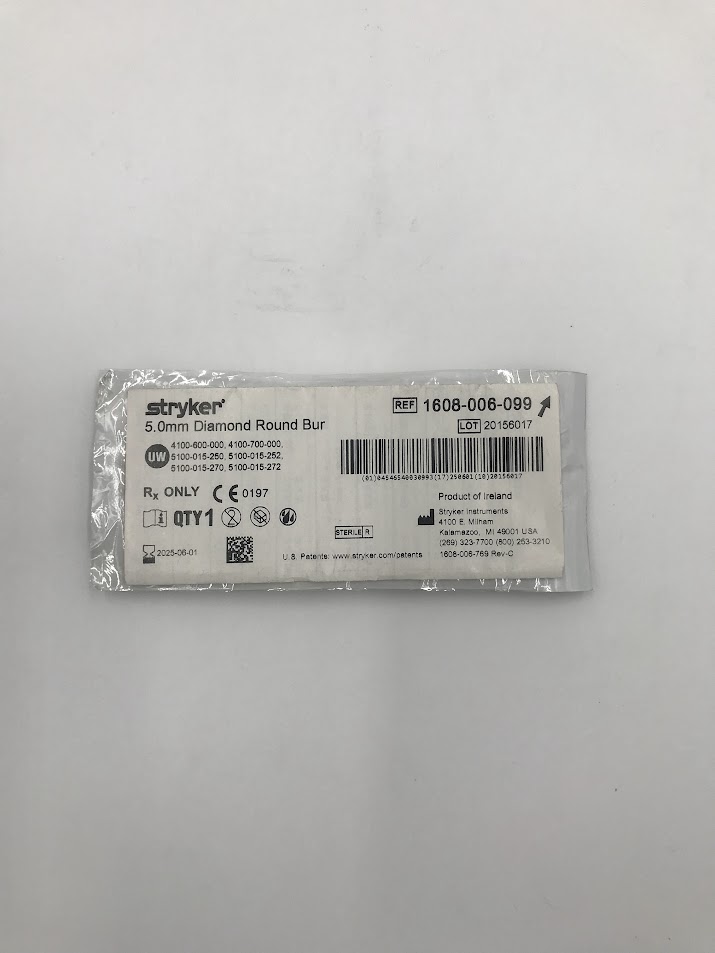 STRYKER INSTRUMENTS 1608-006-099 Diamond Round Bur (5.0mm) (X)