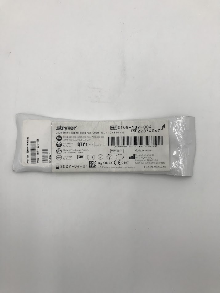 STRYKER INSTRUMENTS 2108-107-004 2108 Series Sagittal Blade Fan, Offset (36.0 x 1.2 x 64.0mm) (ID)