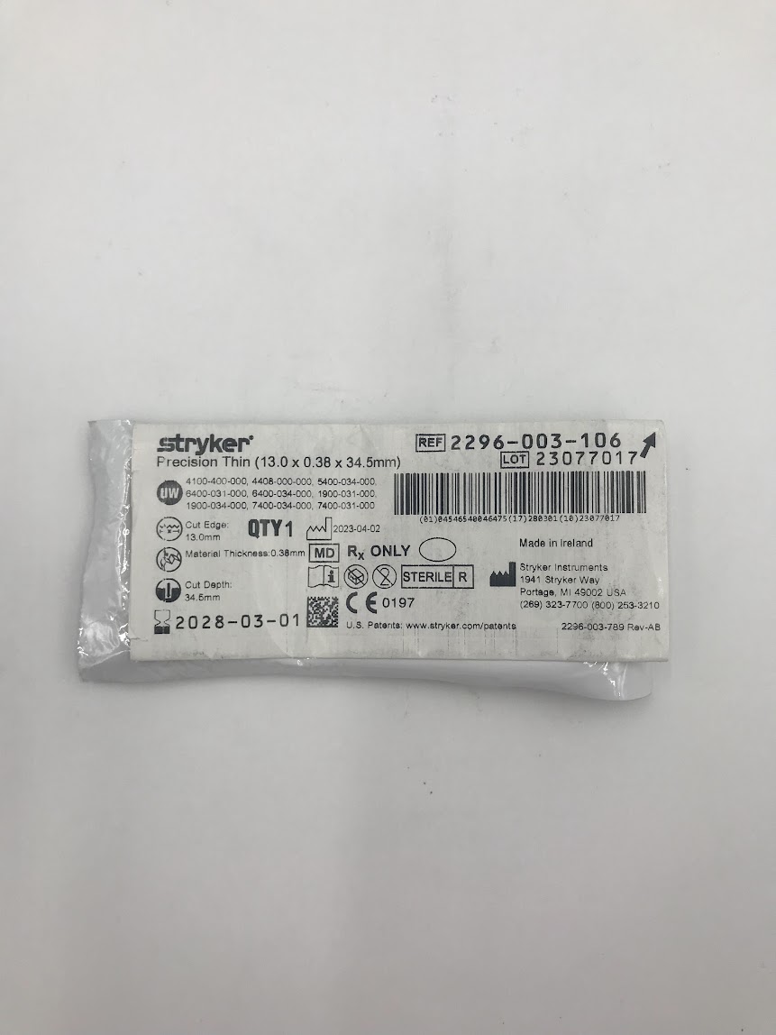 STRYKER INSTRUMENTS 2296-003-106 Precision Thin (13.0 x 0.38 x 34.5mm) (ID)