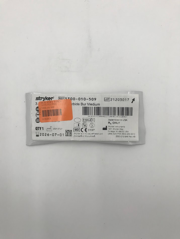 STRYKER INSTRUMENTS 5300-010-509 3.0mm Round Solid Carbide Bur Medium (ID)