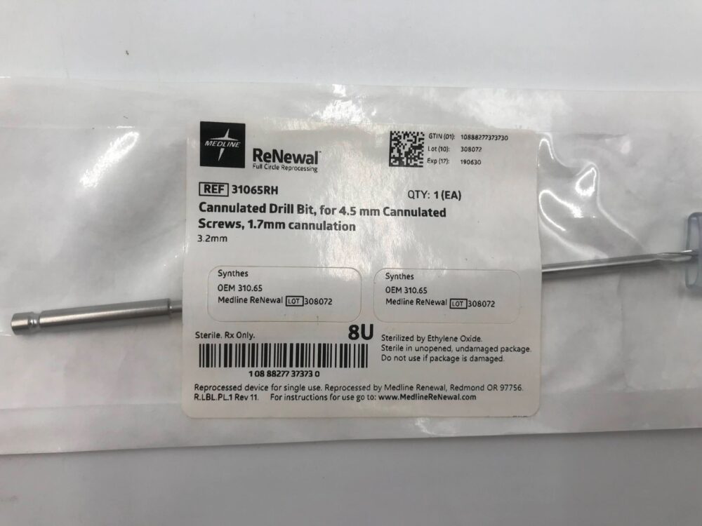 SYNTHES 310.65 Cannulated Drill Bit for 4.5 Cannulated Screws, 1.7mm cannulation 3.2mm (Reprocessed Medline)(X)