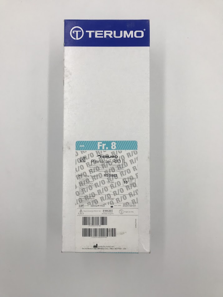 TERUMO RSB802 Pinnacle R/O II Fr.8 Introducer Sheath With Radiopaque Marker Sheath Length: 10cm Guidewire: 0 Guidewire Compatibility: 0.038″ (10/BOX) (X)