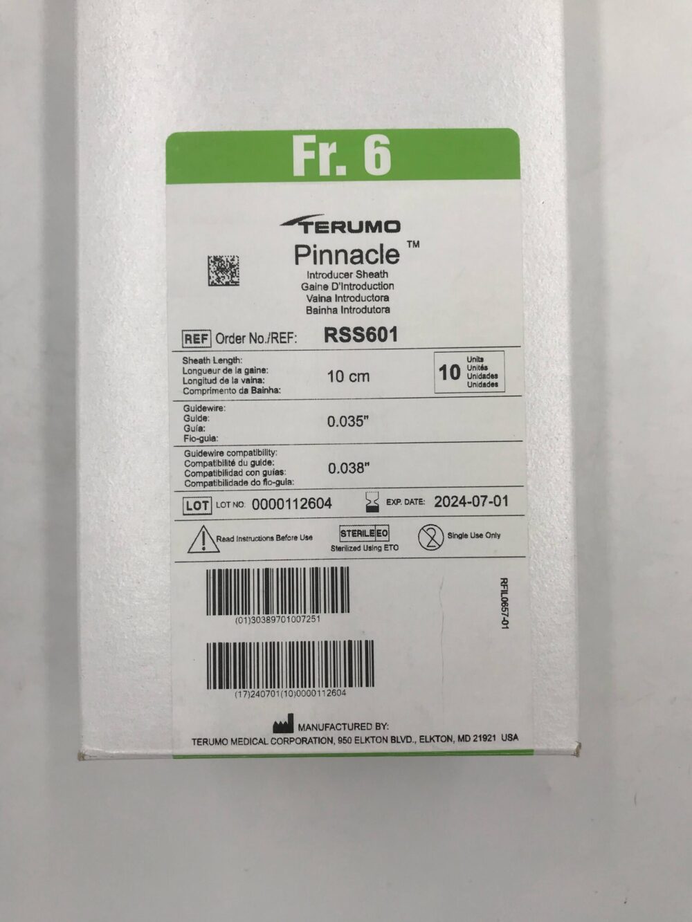 TERUMO RSS601 Pinnacle Introducer Sheath 6F x 10cm (10/Box)(X)