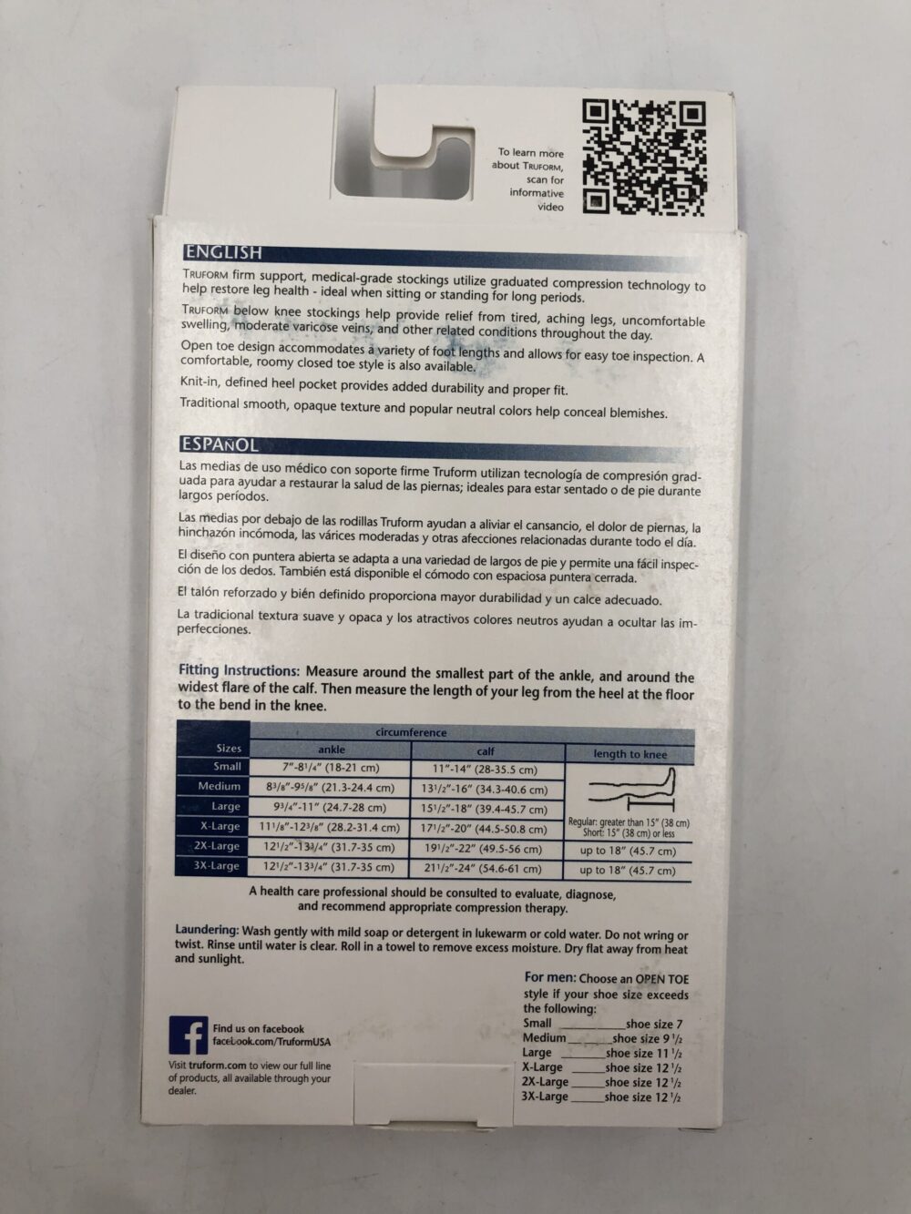 Truform Leg Health 0865BL-XL Below Knee Stockings Open Toe 20-30 Size XL